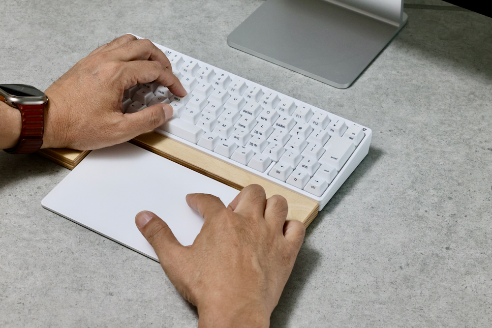 ノートパソコンを使ってる時と、まったく同じ位置にトラックパッドがあるというのは実に快適。