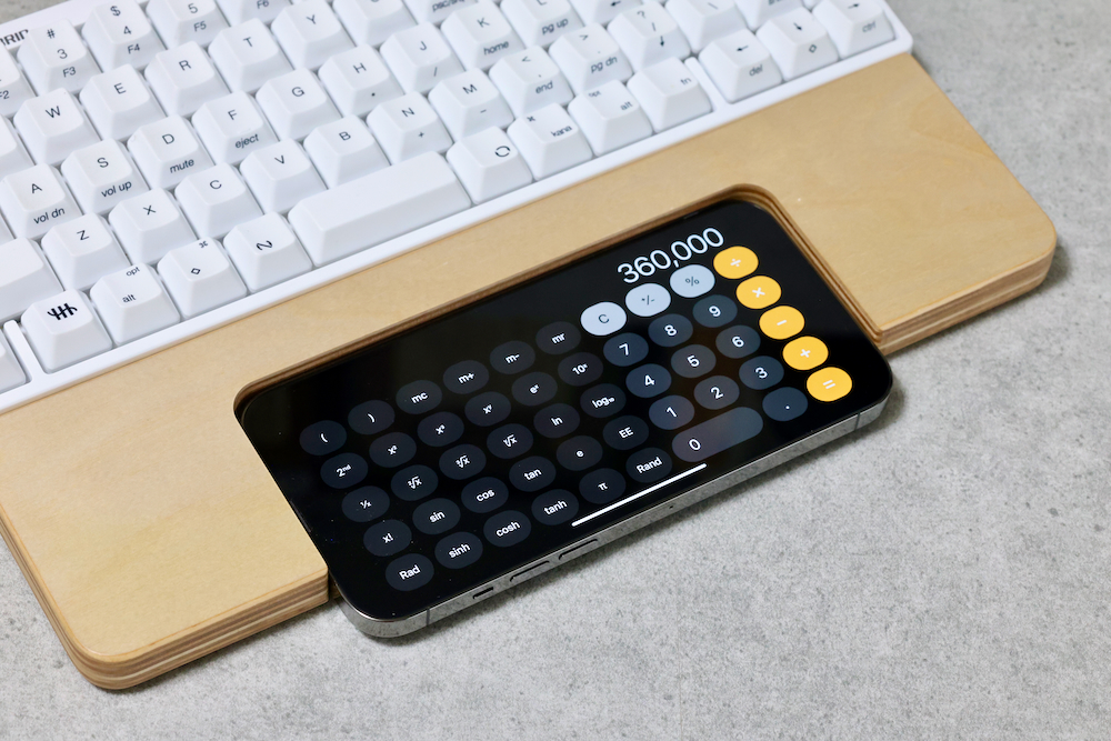 私はアップルのMagic TrackPadを置いていますが、他社製トラックパッドを置いたり、iPhoneを置いたり、電卓を置いたり……と、アイデア次第でさまざまな利用が可能です。