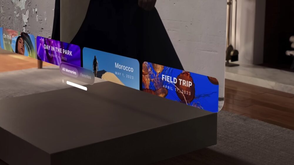 たとえば、ディスプレイはこちらが動いても同じ空間にしっかりと固定されている。それはVision Proが部屋の形状をしっかりと把握しており、その上に投映したオブジェクトをしっかりと置いているからだ。