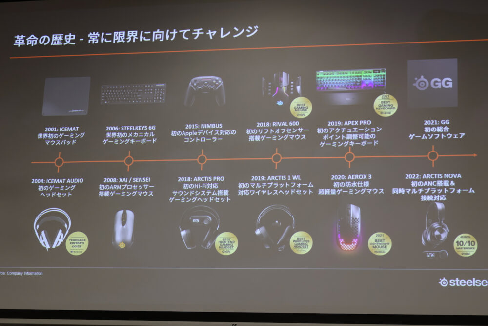 プレゼンテーションでは、SteelSeriesの歴史から、新製品などの詳細があった。