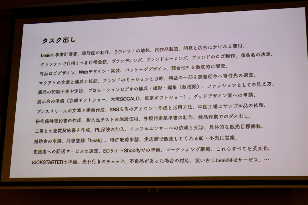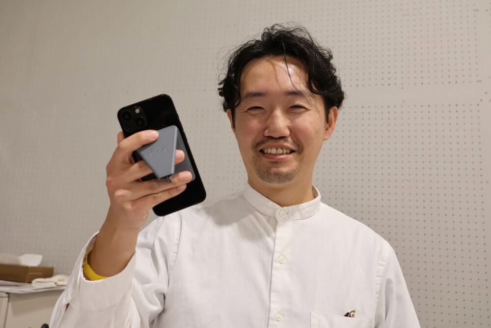 京都在住のデザイナーさんなのだが、自力でゼロから『beak』というスマホホルダー&スタンドを開発された。その開発にまつわるエピソードをお話しされた。