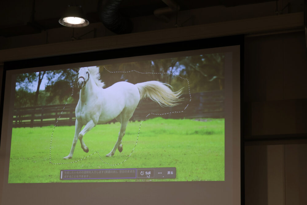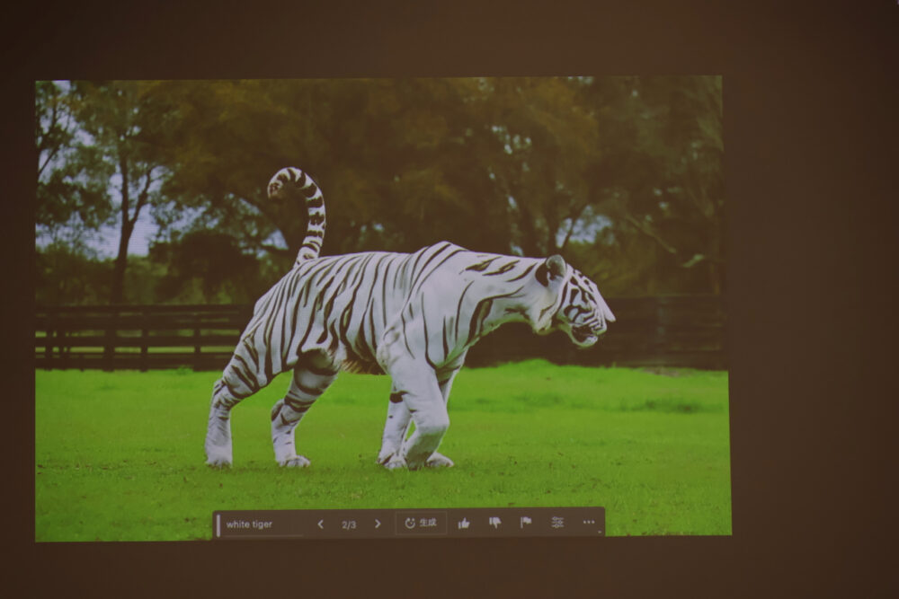 新しい画像生成テクノロジー『Firefly』の技術を使って、白馬を選択して、『white tiger』と書いて『生成』ボタンを押すと……。