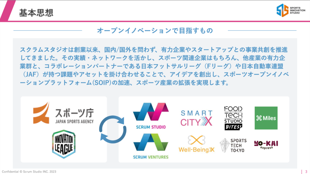 スポーツ庁は、日本のスポーツの世界にテクノロジーをより取り入れるためにSOIP(Sports Open Innovation Platform)の推進を計画しており、そこでスタートアップの先進的技術を組み合わせた事業共創の推進に長けたScrum Studioと協業することにしたとのこと。