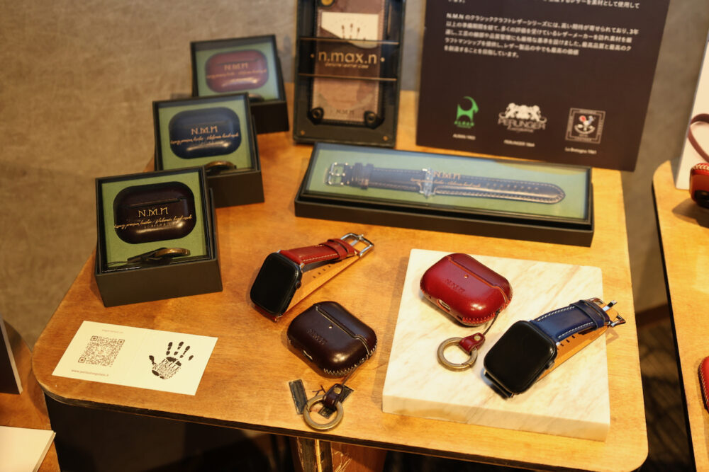 Apple Watchのベルト、AirPods Proのケースカバーなどを中心に、さまざまなアップル製品関連の革製品が販売されている。