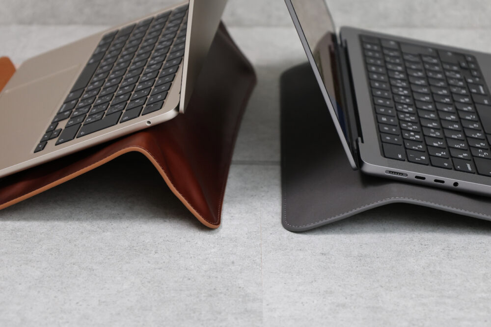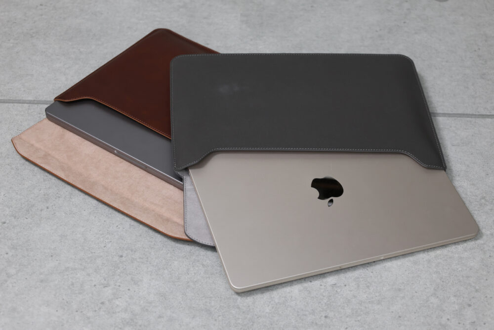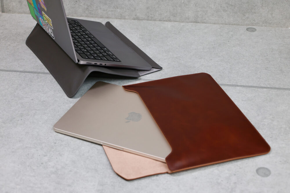 13〜14インチ、15〜16インチの2種類、本革とヴィーガンレザーのFleeve