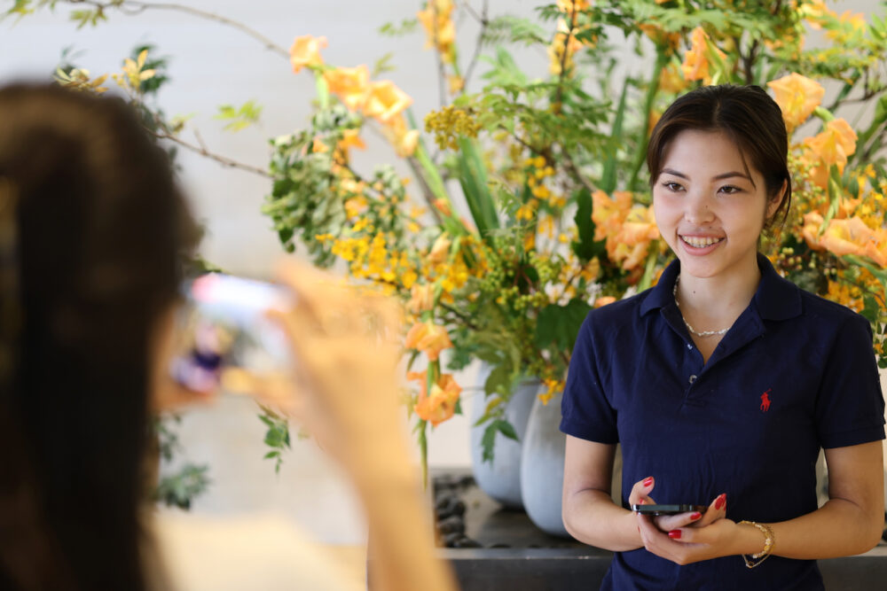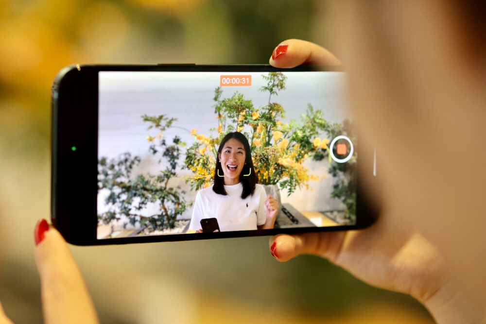 まずは、場所を選んで、自己PRシーンの撮影。相原瑚子さん(写真下)は豊富な海外生活での経験のおかげで得意な英語を活かして、日本語、英語を交えてプレゼンテーションされていた。