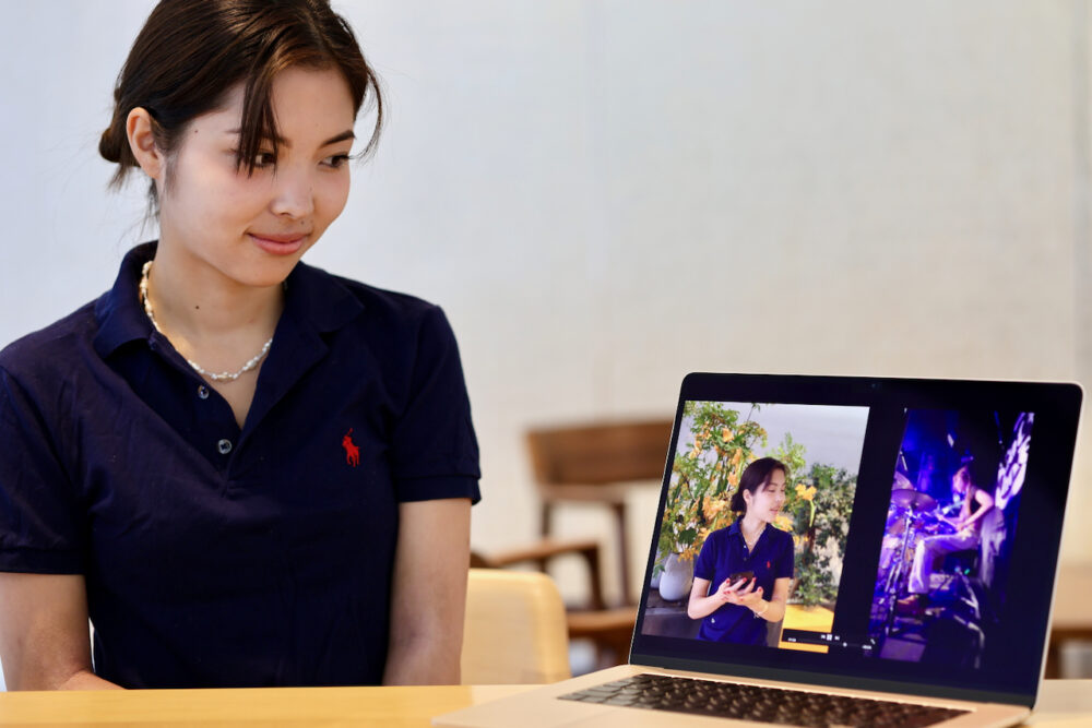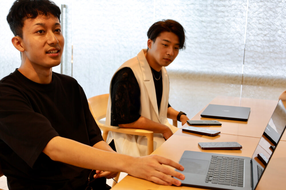 唯一のWindowsユーザーだった肱岡亮汰さん(手前)は、「Macで動画を編集するのは初めてだったのに、何も迷うことなく編集できてビックリ。スムーズに使えるようにできているんですね!」と驚いた様子。肱岡さんは九州出身で子供時代はアメリカに。バスケットボールが好きで、小4の頃からずっとやっているという。将来はシステムエンジニアの道を目指すという。