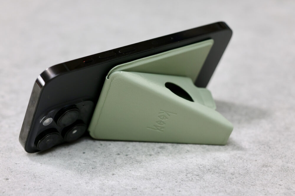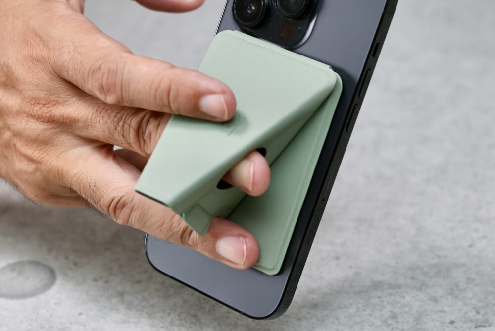 MagSafeになったので、従来のように多くのスマホケースに対応するというわけにはいかなくなったが、MagSafe対応のケースには付けることができる。