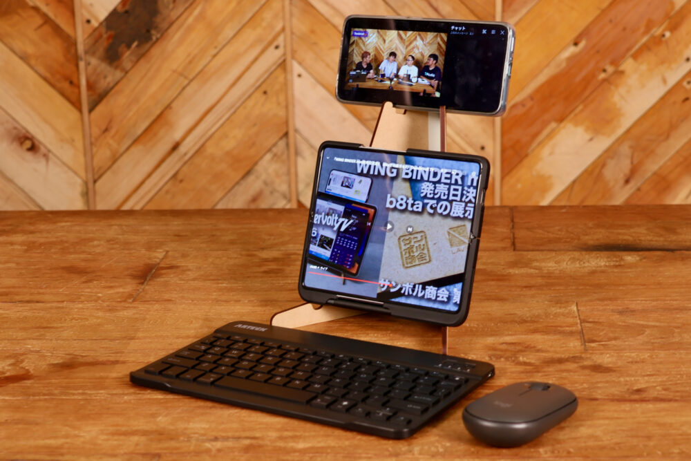 キーボードと組み合わせれば、簡単なモバイルワークスペースにも。