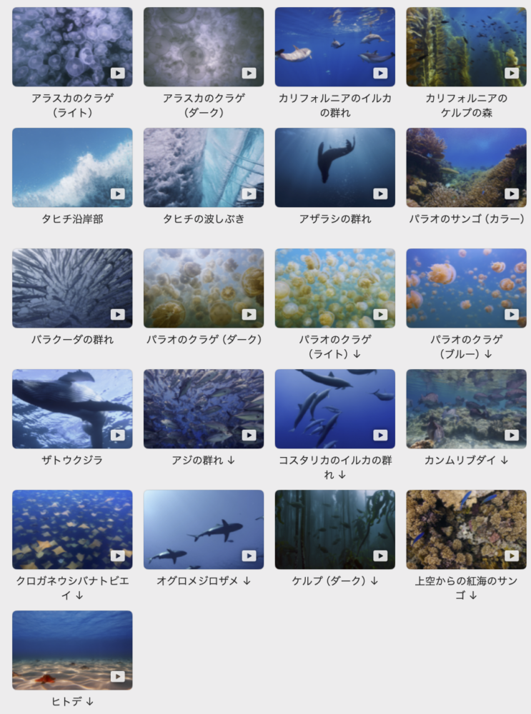 スクリーンセーバーでは、デバスズメダイやハナダイの類いが泳いでいる光景も見られる。