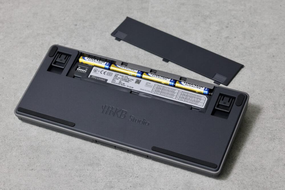 単3乾電池4本を底面から入れるようになったので、HHKB Hybridにあったような電池の出っ張りはなくなった。