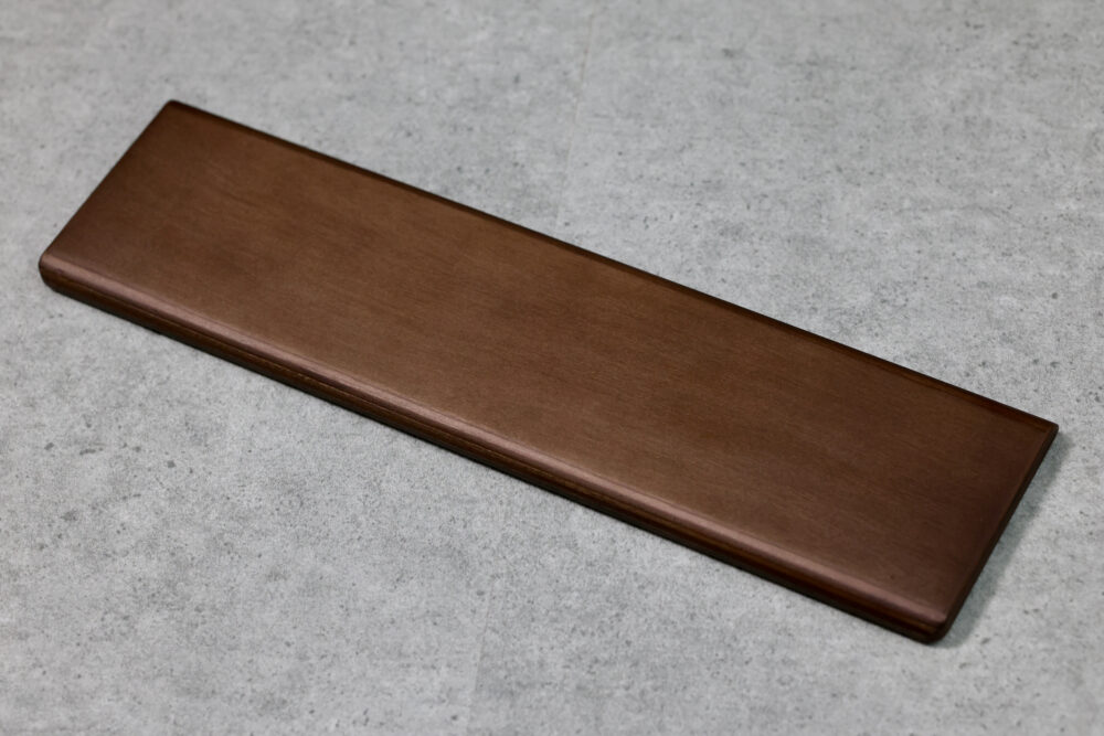 一見、昔の無垢材のパームレストのウォールナットを思い出す方も多いと思うが、こちらは最近のタイピングベッドと同様のプライウッド(合板)となっている。私などは木として無垢材の方が高級かなと思ってしまうが、無垢材はどうしても湿度や温度などで、捩れが生じてガタツくことが多い。プライウッドならその心配はない。
