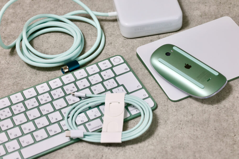 ベテランなら、キーボードやマウスは手持ちのものを使いたい……ということも多いと思うのだが、本機購入時にマウスやキーボードを省略することはできない。かならず共色のものを買わなければならないのだ(共色のものは、単体売りはないので、価値は高いとも言えるが)。そういう意味でも、本機は「初めてMacを買う人のために」という製品なのだろう。