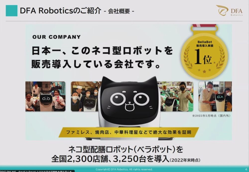 最近、ファミレスなどでも見かけるようになった、配膳ロボットを販売導入している会社だ。