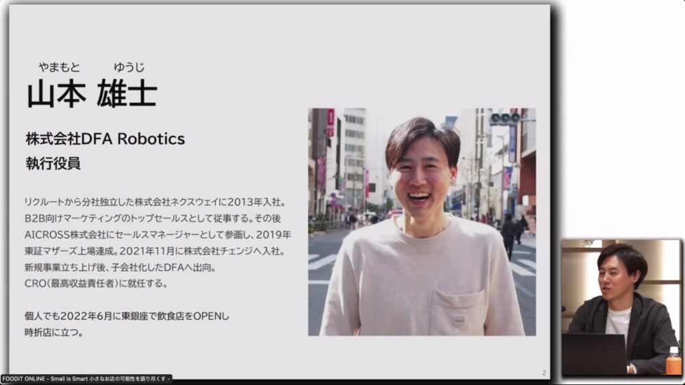 次に登場されたのは、DFA Roboticsの山本雄士さん。