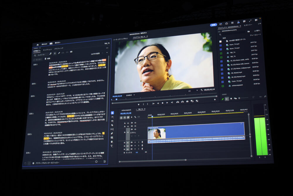 Premiere Proの『文字起こしベースの編集』と『フィラーワードの検出』の機能の実演もすごかった。