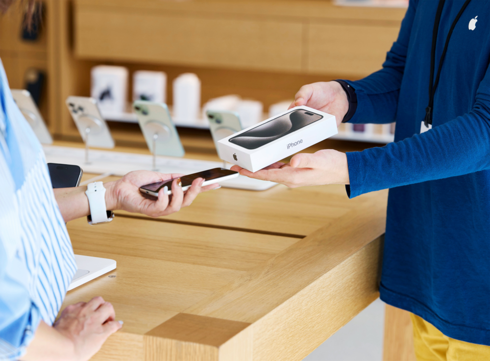 iPhone 15は、36カ月の分割払いで24カ月目にアップグレードするオプション付きで購入できる。iPhoneは価格が下がりにくいので、Apple Trade Inで古いiPhoneを下取りに出しつつ、新しいiPhoneを購入できる。教育に欠かせないアップル製品を、学生や保護者は特別な割引価格で購入することができる。