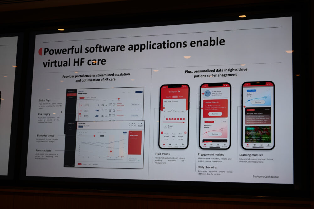 John Lipman CEO率いるBodyportは体重計を兼ねたデバイスに心臓と血液の機能を測定するセンサーを内蔵し、独自のアルゴリズムを用いて非侵襲的にヘモダイナミックバイオマーカーを計測する。