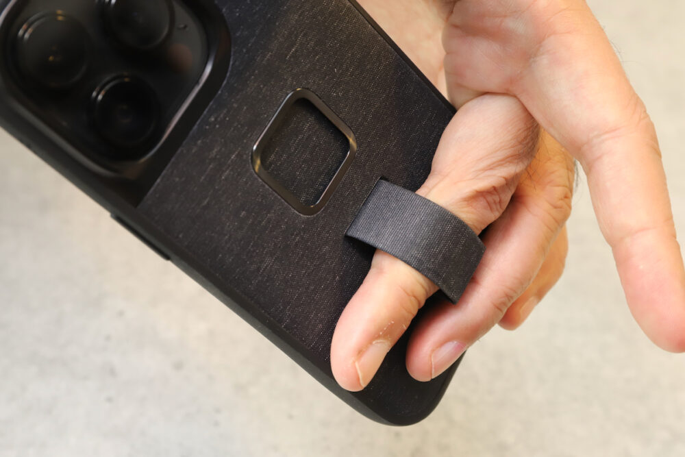 実は小さな違いのある2種類のバージョンがある。ナイロンループの付いているタイプと、付いていないタイプだ。筆者は単体で使っていてもホールド性が高い方がいいので(仕事柄、iPhoneを傷つけるワケにはいかないので)、ナイロンループの付いたタイプを使っている。