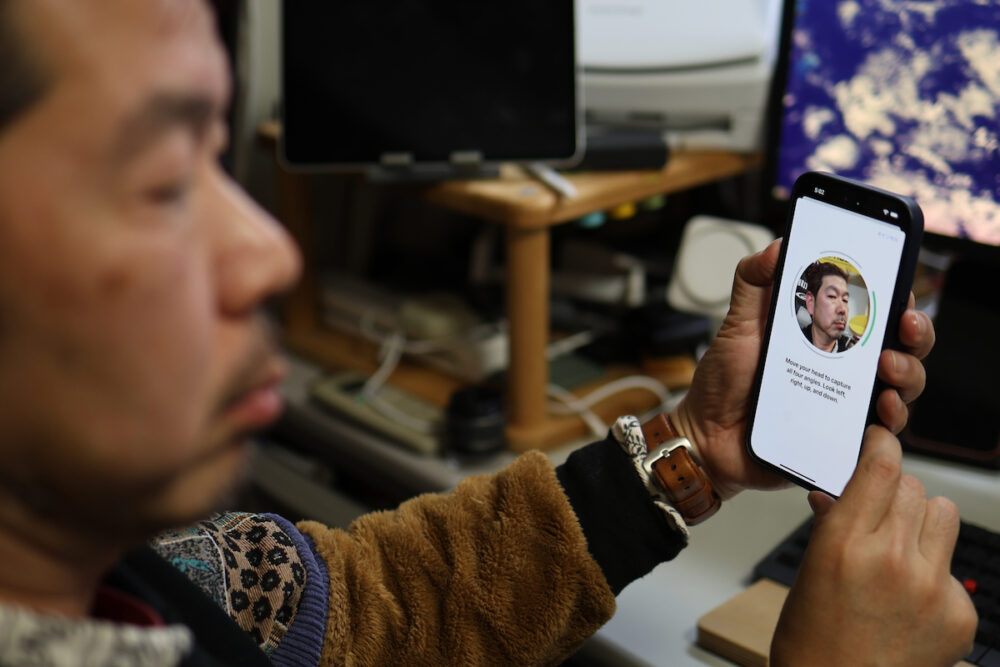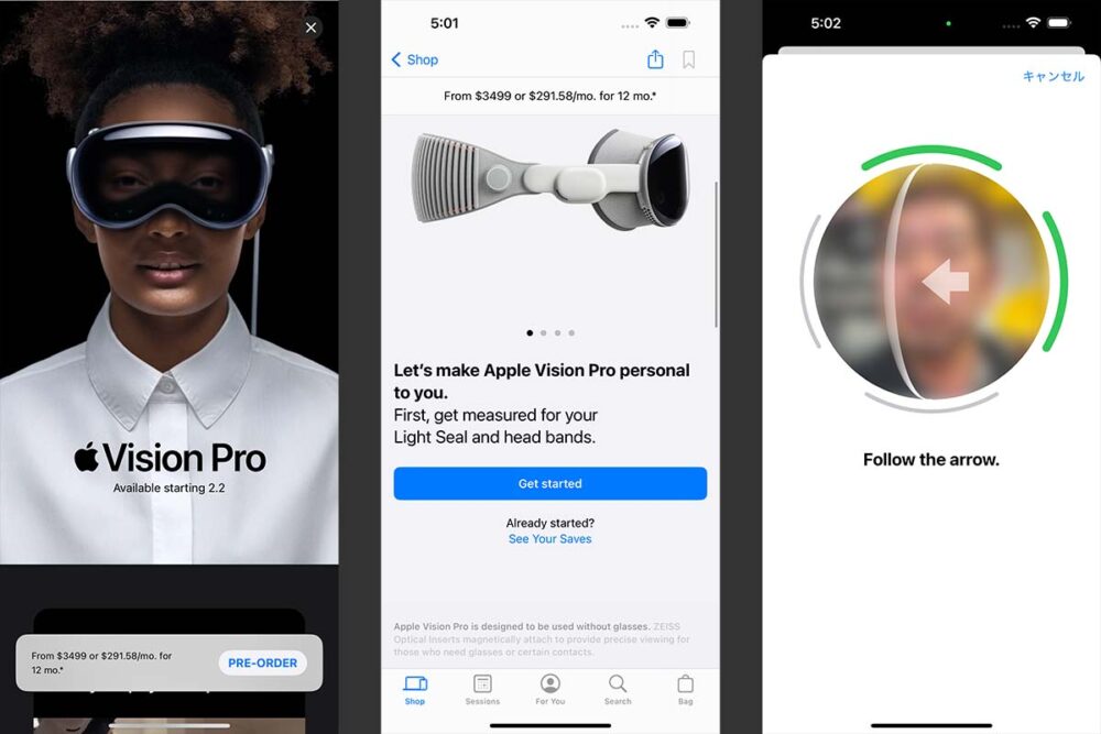 まず、Face IDを使った顔の形状の計測が始まる。これで自分の顔にピッタリとフィットしたVision Proが届くというわけだ。
