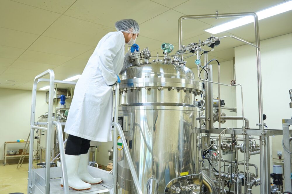 その後、培養技術も進められ、特殊な醗酵タンク内で、適切な泡盛粕の濃度、温度などさまざまな条件をコントールすることで、安定した品質の『うま藻』が作られるようになった。