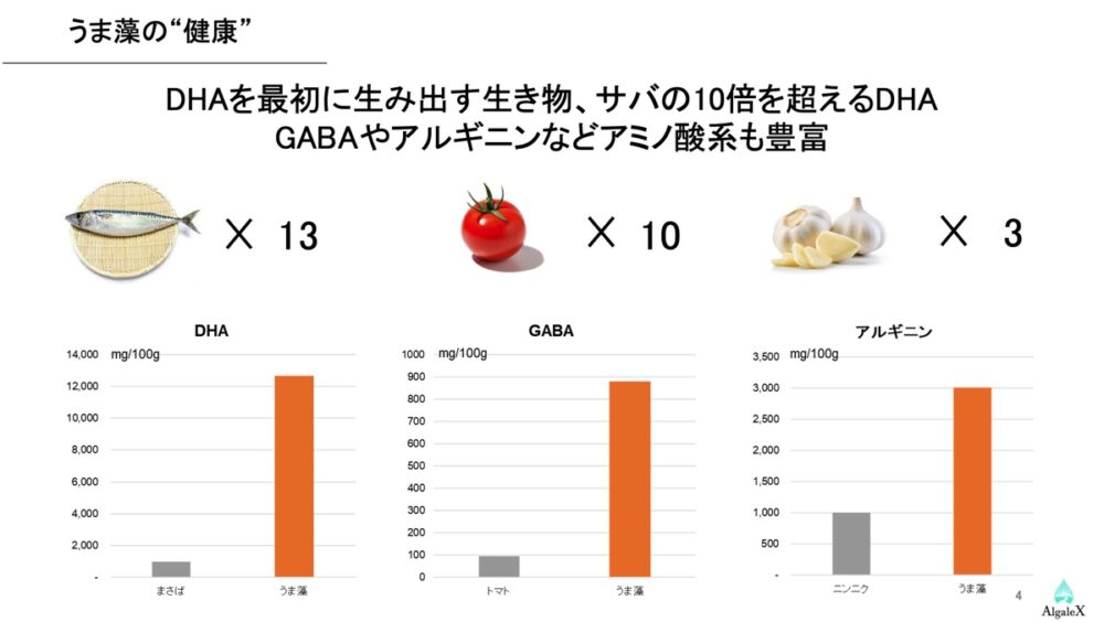 提供いただいた資料によると、サバの13倍のDHAを含むばかりか、トマトの10倍のGABA、ニンニクの3倍のアルギニンを含むという。驚くほどさまざまな有効成分を含む食材なのだ。