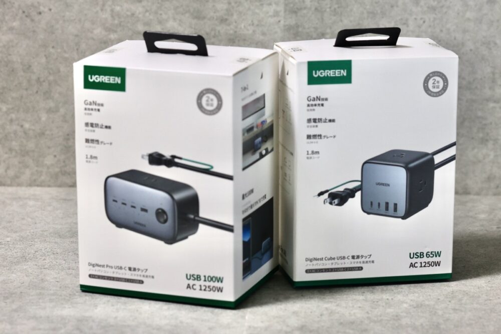今回テスト用にお預かりしたのはUGREENの充電器2点。『DigiNest Pro 100W 40900』と、『DigiNest Cube 65W 40862』だ。