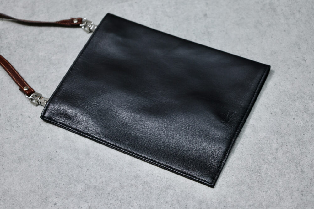 革はテロッとした柔らかいもので、サイズ感は、iPhoneとちょっとした小物を入れるのにピッタリサイズ。そして、なんか我々が思っていたより、ずっとスタイリッシュで上質感がある。