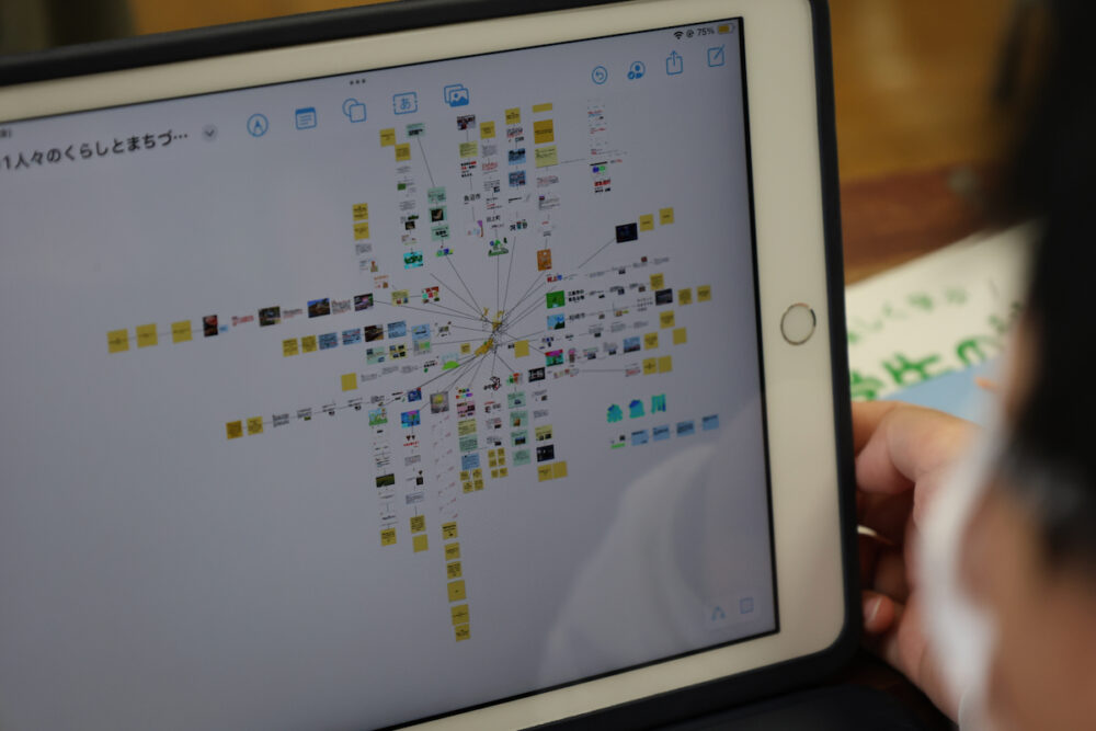 ※英語版はFreeformと呼ばれる。簡単にいえば無限に広がるホワイトボードアプリ。写真やテキストを貼り付けたり、手書きしたりできるのだが、iCloud経由で共有もできる。このフリーボードを使って、成果物を共有しているのだ。