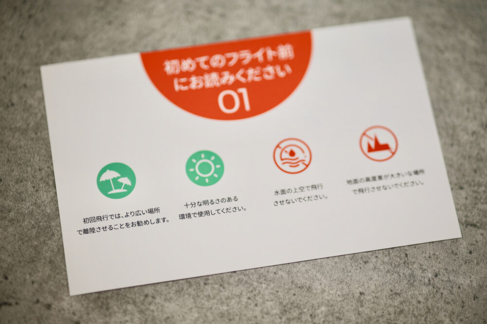 パッケージには『地表の高度差が大きい場所で飛ばさない』『水面の上空で飛ばさない』などの注意事項が書いてあるが、輸入元には『人の頭上で飛ばさない』『人口密集地で飛ばさない』『公道で飛ばさない』『重要文化財の近くで飛ばさない』など、前述の日本の事情を加味した注意書きを加えて欲しいと思う。
