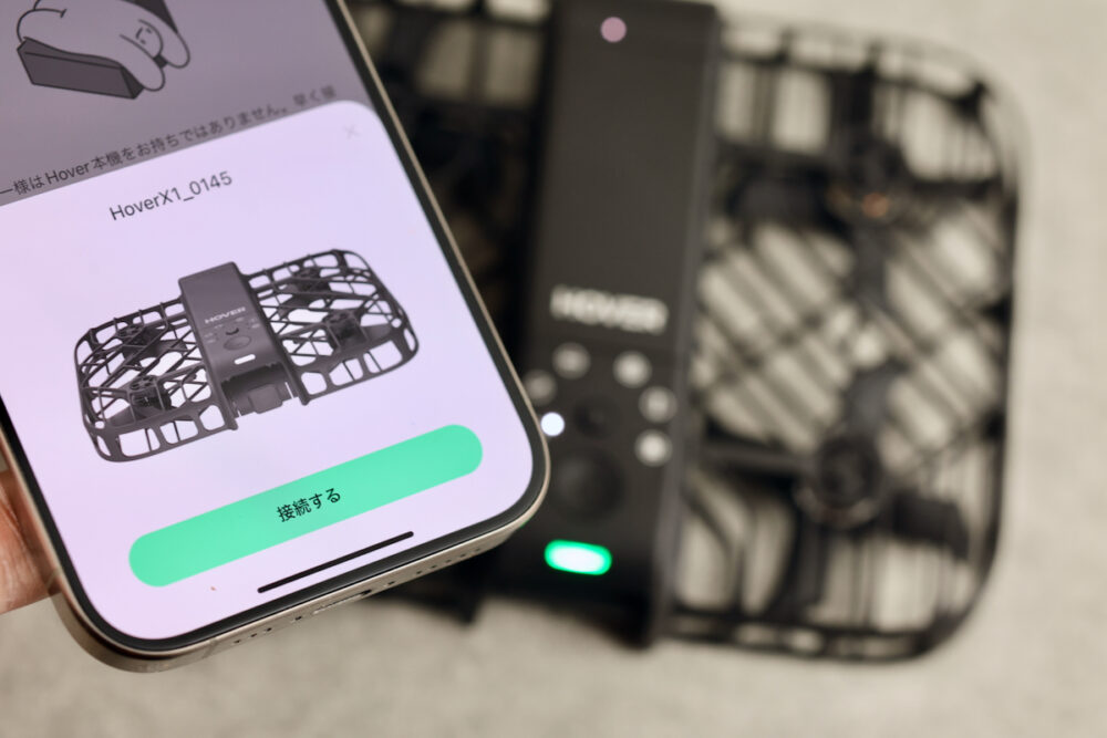 スマホにアプリを入れてペアリングして、より詳細な設定を行ったり、画像を転送したりできる。ただし、飛ばす時に、通常はスマホを操作する必要はない。