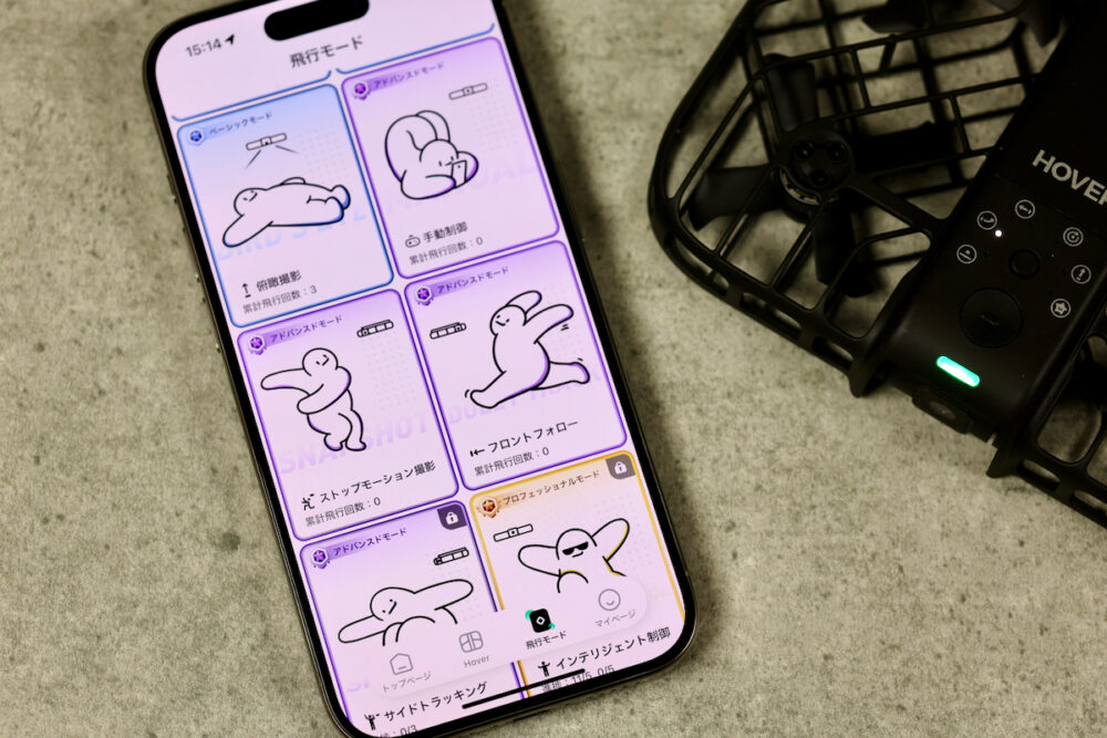 モードは初期にプリセットされているもの以外にもあって、経験を積むとアンロックされるようだ。たとえば、何回かフォローで撮影すると、フロントフォローがアンロックされる。フロントフォローを繰り返すと、サイドフォローができるようになる……という具合だ。