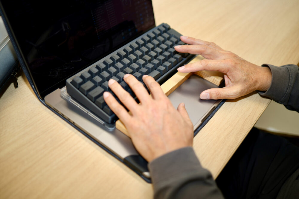 集積合板なので、手を置いた時になんとなく温もりがあっていい。もちろんHHKBをノートパソ