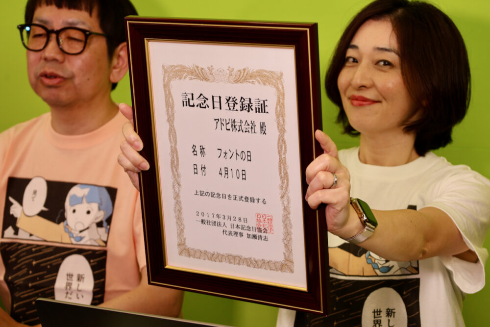 そして、毎年恒例。日本記念日協会に、『フォントの日』が認められているという登録証をかかげるところからはじまった。