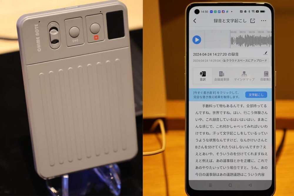 筆者が気になっている、AIボイスレコーダー『CHIME NOTE Pro』も展示されていて、試すことができた。