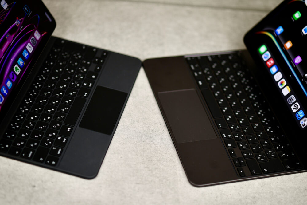 左が旧世代のMagic Keyboard。右がiPad Pro(M4)専用のMagic Keyboard。
