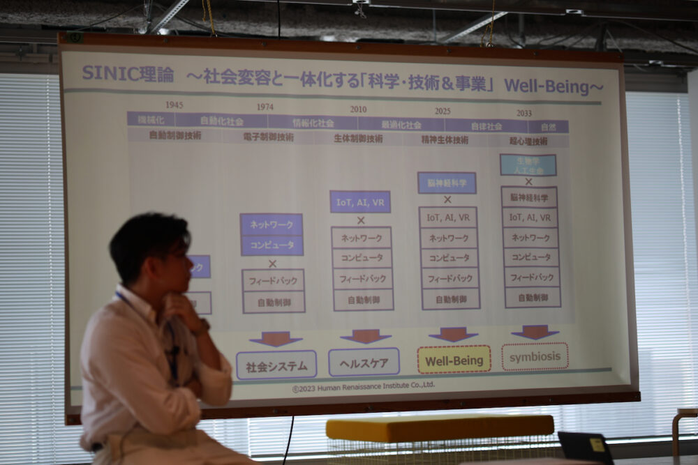 ここで、大きな話題となったのはオムロンの創業者・立石一真さんが、1970年の国際未来学会で発表されたSINIC理論。