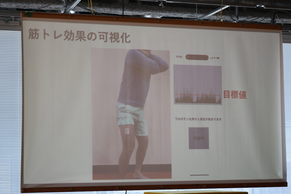 デモをマッチョな男性がやっていたので、筋トレをしたい若い人向けに見えるが、このデバイスの目的は、むしろ高齢者への情報提供。
