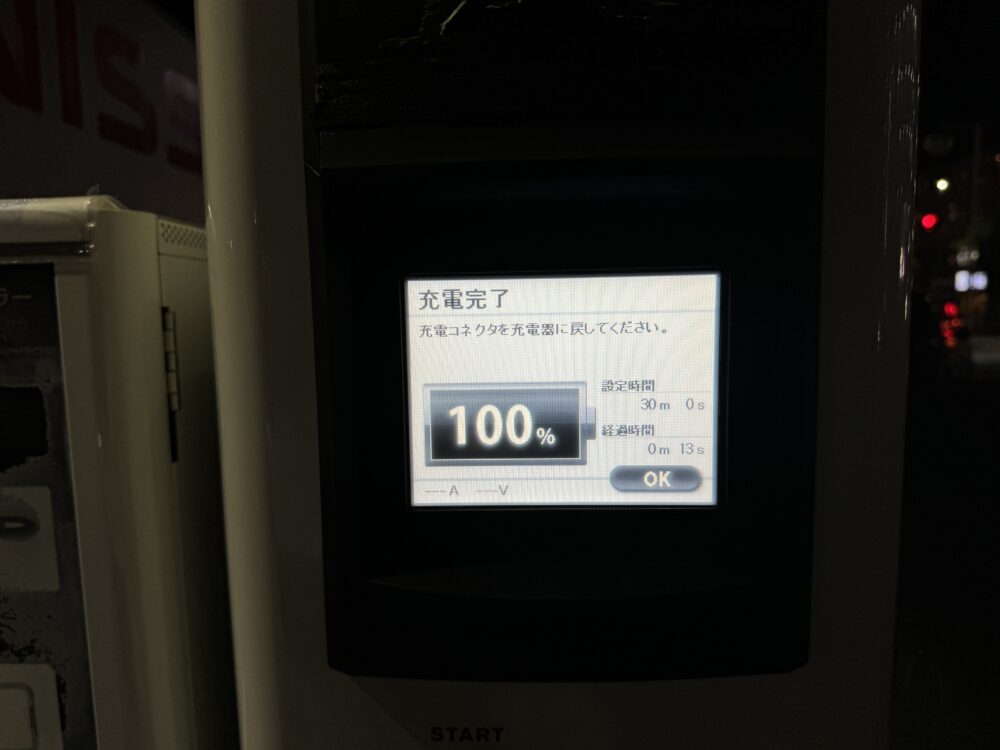 横浜みなとみらいの日産本社から、お借りして家まで乗って帰り、出発前夜に家の近所の日産ディーラーのチャージャーで、めいっぱい満タンにした(にも関わらず、家までの2kmほどで2%残量が減ったのはなんか悔しい)。