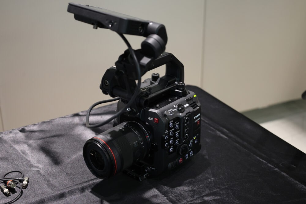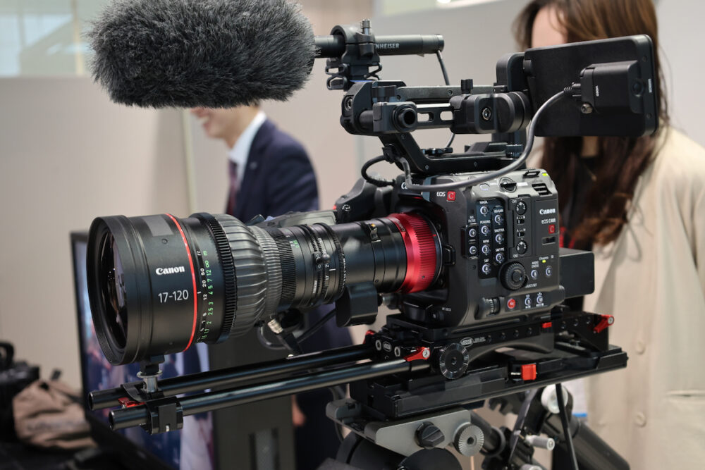 ちなみに、下の写真に写っているレンズは、一緒に発売されるCN7×17 KAS T/R1を装着している。このレンズはRFマウント用のシネマレンズで、価格はオープンだが、350万円ぐらいとのこと。つまり、しめて軽く500万円超。動画のプロってすごい……。