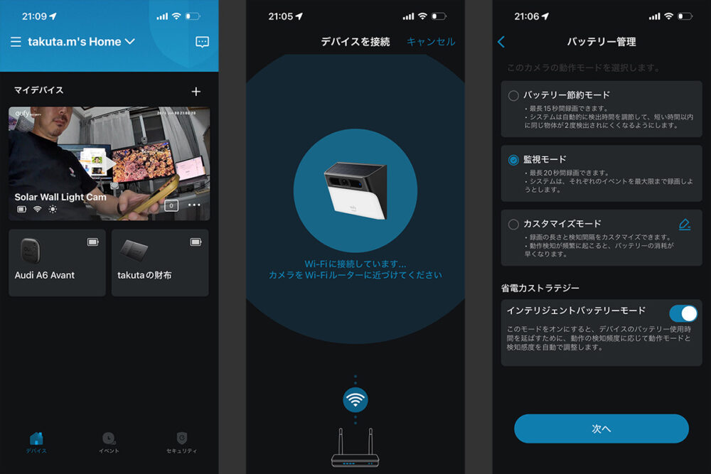まずは、eufyアプリを立ち上げて設定する。Security SmartTrackも使っているので、それと同じアカウントに、デバイスを登録する。Wi-Fiや、バッテリーの設定もこのアプリで行うことができるので簡単だ。