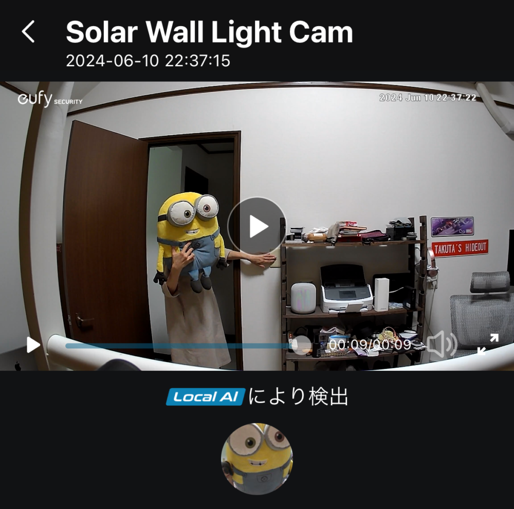 また、WWDCでのアメリカ出張の時にも、部屋に置いておくと、ちゃんと通知が来て、妻が某キャラクター人形をかかげて部屋に侵入している動画を見ることができた(通知のテストをしたいから、1〜2度部屋に入ってみてと言ってあった)。