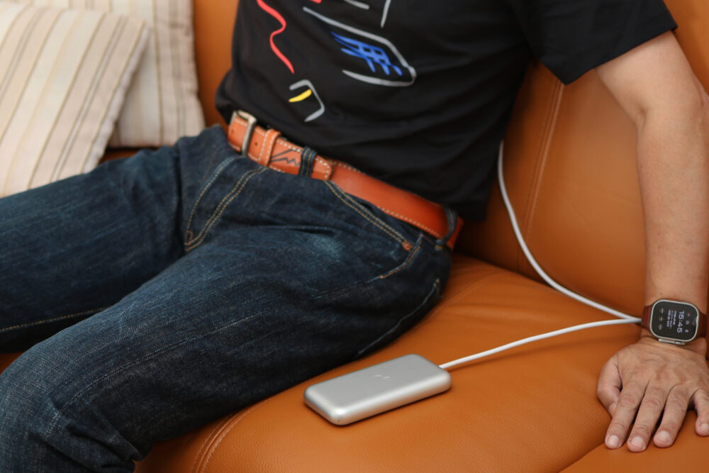 また、Vision Proは立って動いたりしながら使うこともあるから、バッテリーも持って歩きたい。ポケットに入れてもいいのですが、ポケットに入れるには少し大きいし、室内着などポケットがない服もある。男性ほど服にポケットがない女性はなおのことではないかと思います。