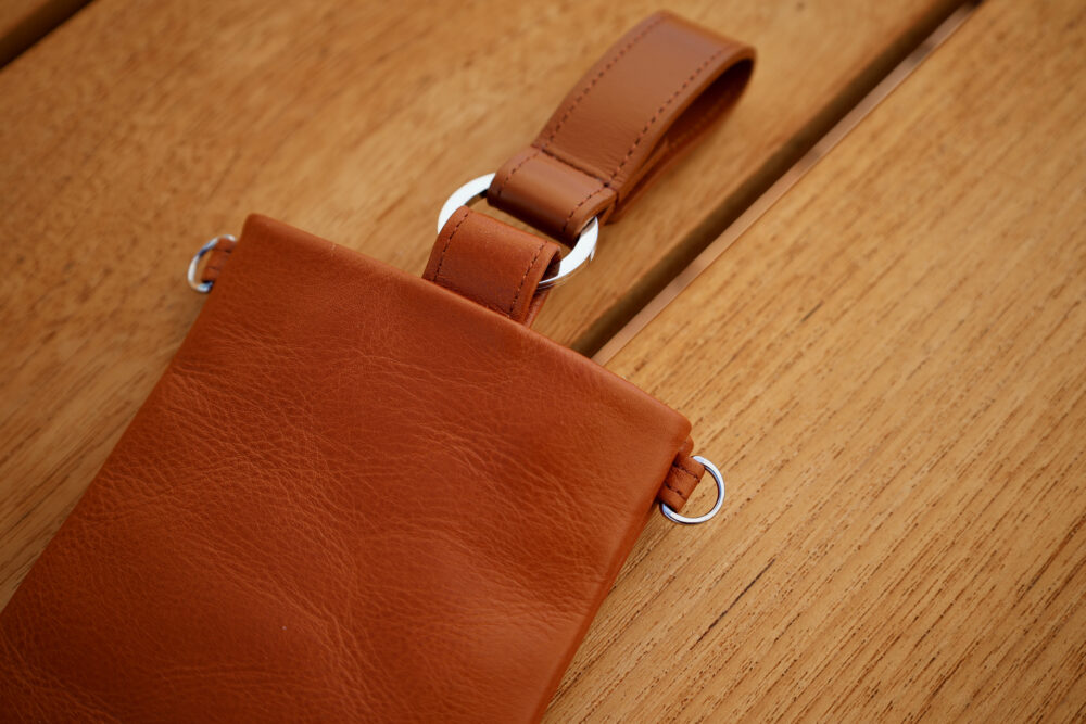 ベルトループ部分は、ベルトにしっかりと固定できるようにステアレザーを顔料塗装して、アイロンプレスで仕上げてあるのだそうです。