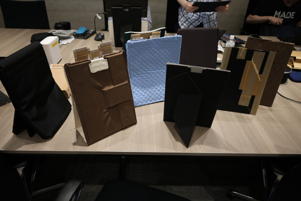 ちなみに、このスタンド、非常に難産だったらしく、内覧会会場にもさまざまな試作品が展示されていた。
