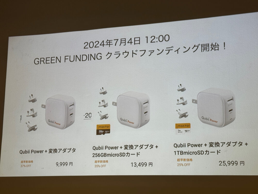 そのMaktar Qubiiに最新モデル、アダプター機能が付いたQubii Powerが追加され、本日7月4日12:00からGREEN FUNDINGでクラウドファンディングが開始される。
