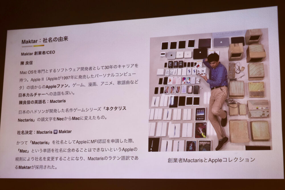今回の発表会は、二子玉川の蔦屋家電で行われたのだが、Maktar社の創業者/CEOであるMactaris(陳良信)さんも来日されており、社名の由来などを聞くことができた。