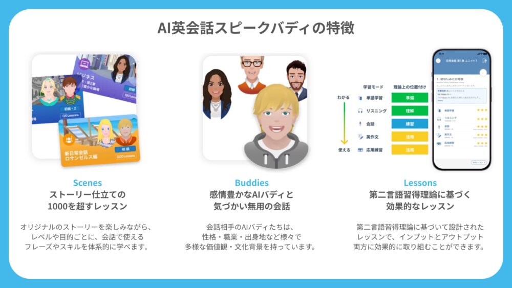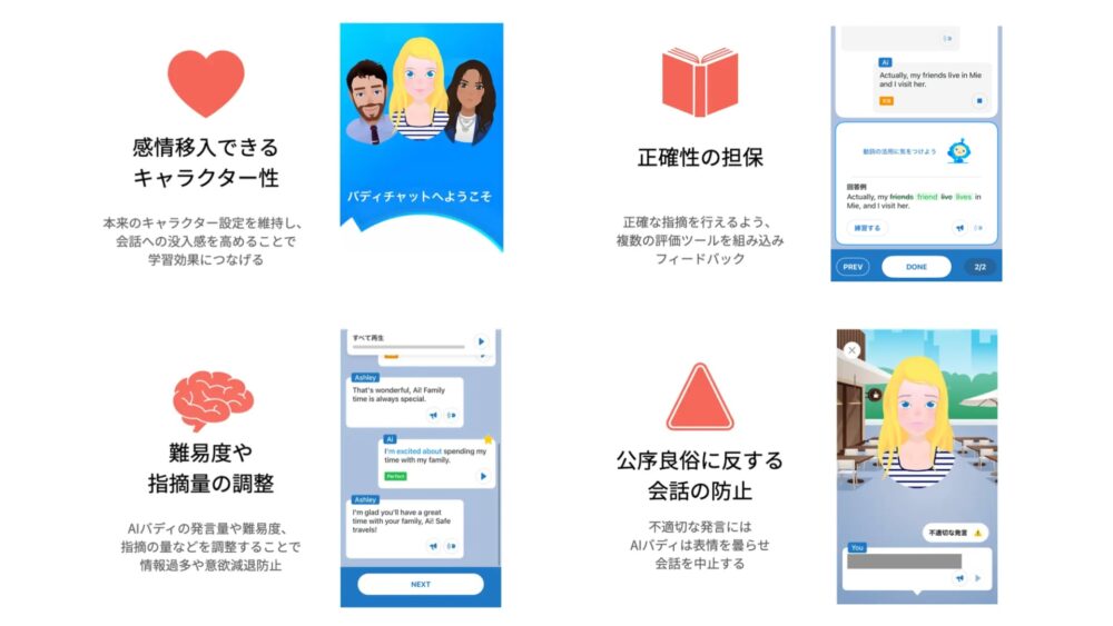 さらに2023年9月末からは、『バディチャット』というAI英会話もできるようになっている。