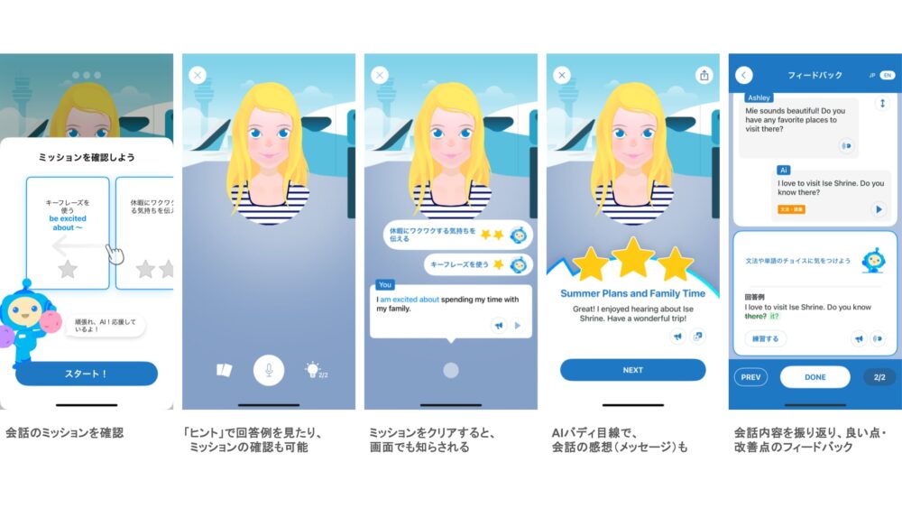 『単語学習』『リスニング』『会話』『英作文』『応用練習』を毎日
