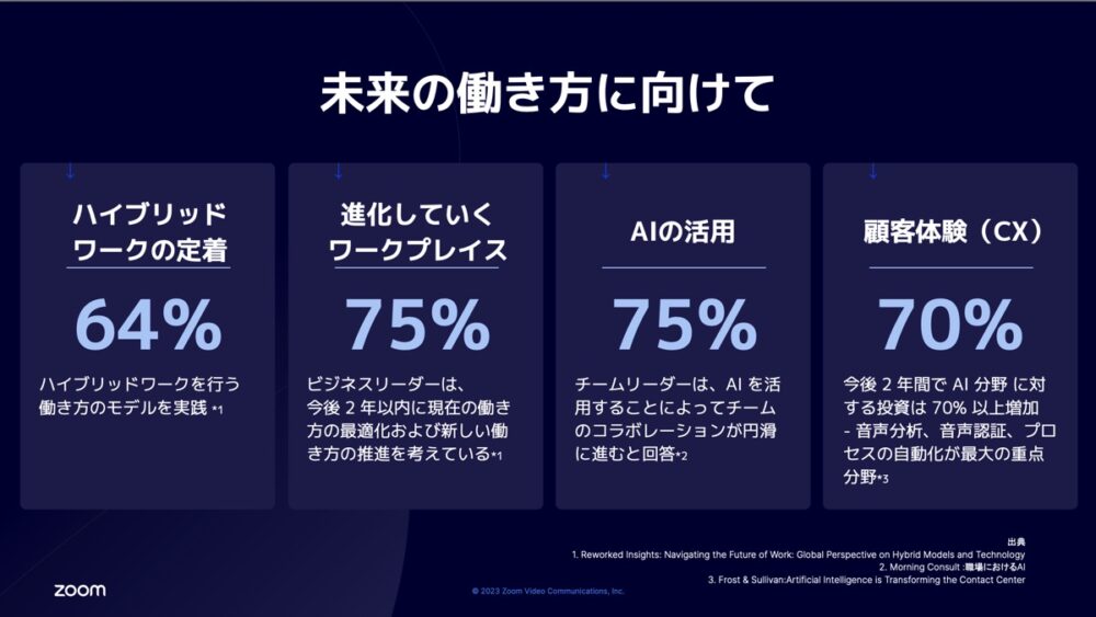 イベントでは、さまざまな導入事例が紹介され、Zoomを導入した企業の方がお話をされたが、ここでは紹介するスペースがないので割愛する。
